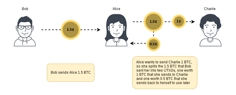 | <li>As the input's sum is superior to the amount of the transaction, an ouput is added.<br>This output is the change to Bob.<br>In the example, this 3 <span class="glyphicon glyphicon-bitcoin"></span></li> | |||